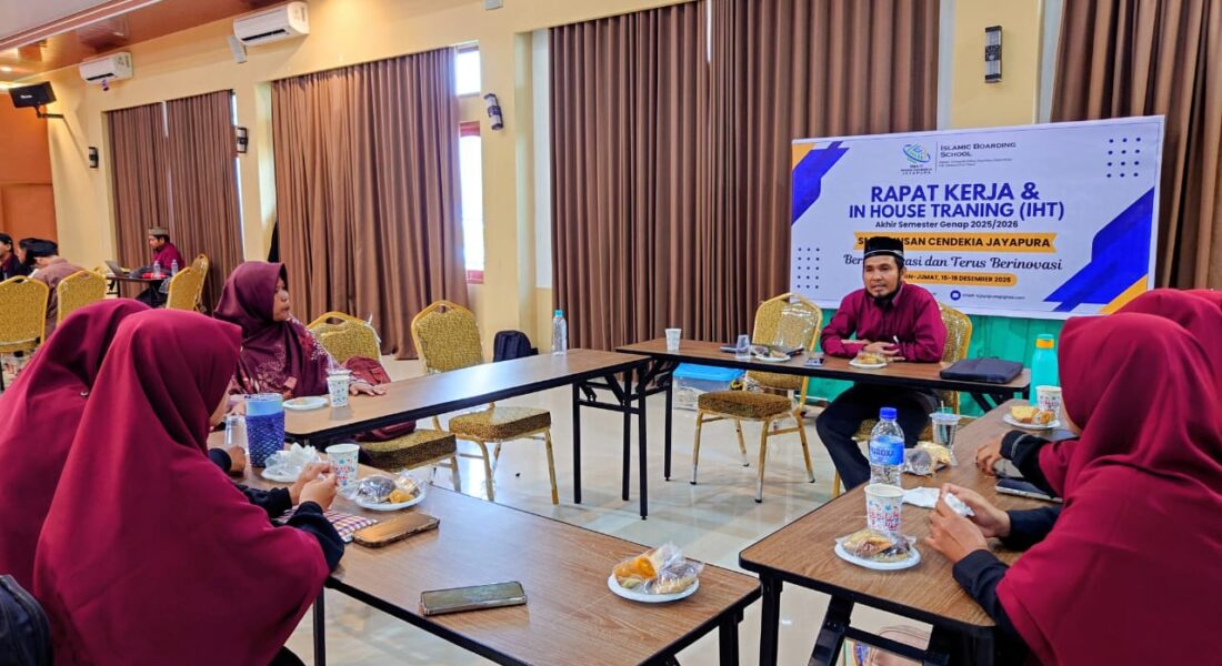Doyo Baru, 15 Desember 2025 – Mengakhiri kalender akademik semester genap Tahun Pelajaran 2025/2026, SMAIT Insan Cendekia Jayapura menggelar Rapat Kerja (Raker) tahunan yang diikuti oleh seluruh jajaran pendidik dan tenaga kependidikan. Kegiatan yang berlangsung selama 5 hari ini, yaitu dimulai pada tanggal 15 – 19 Desember 2025 ini bertujuan untuk mengevaluasi seluruh program sekolah dan pelaksanaan pembelajaran yang telah berjalan selama 1 (satu) semester. Dengan adanya Raker ini, sekolah terus mengawal pencapaian visi dan misi sekolah melalui program sekolah yang telah ditetapkan sebelumnya. Selain itu, Raker ini sekaligus menjadi wadah koordinasi untuk memecahkan berbagai tantangan instruksional maupun manajerial yang dihadapi di lapangan.